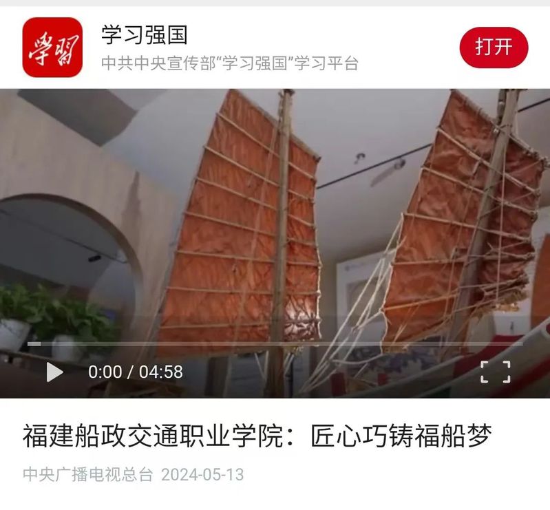 日前,中央廣播電視臺(tái)學(xué)習(xí)強(qiáng)國平臺(tái)推送我院非物質(zhì)文化遺產(chǎn)福船紀(jì)錄片《匠心巧鑄福船夢》,對(duì)我院水密隔艙福船制造技藝的傳承與發(fā)揚(yáng),精益求精、密益求密的工匠精神進(jìn)行宣傳。