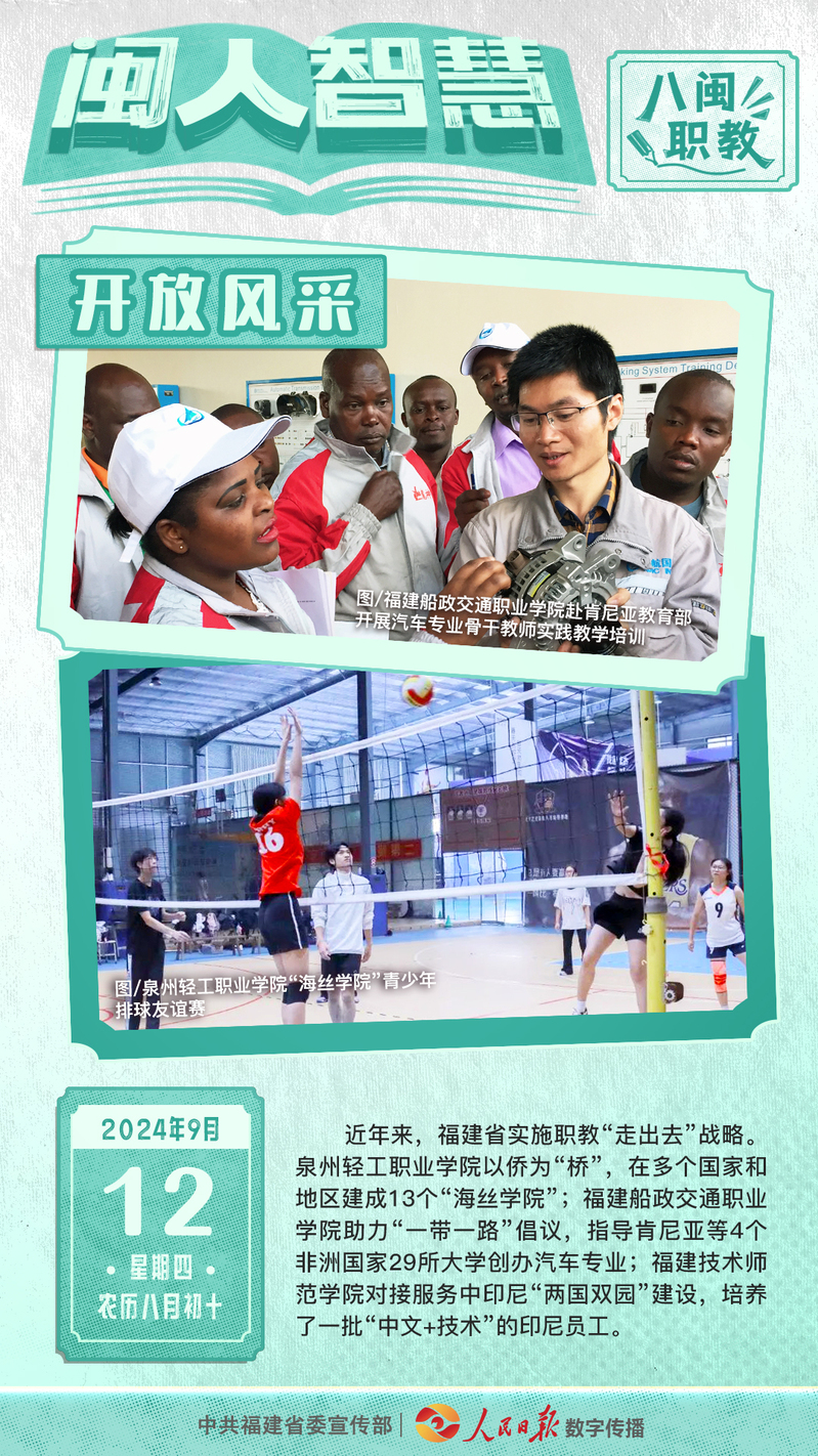 近期,中共福建省委宣傳部和人民日報(bào)數(shù)字傳播共同出品的《閩人智慧》日簽欄目特別策劃推出八閩職教系列,圍繞院校風(fēng)采、產(chǎn)教風(fēng)采、學(xué)生風(fēng)采、服務(wù)風(fēng)采、創(chuàng)業(yè)風(fēng)采、工匠風(fēng)采等主題展現(xiàn)福建如何賡續(xù)優(yōu)良傳統(tǒng),培養(yǎng)高素質(zhì)技術(shù)技能人才,讓職業(yè)教育成果在八閩大地落地開花。