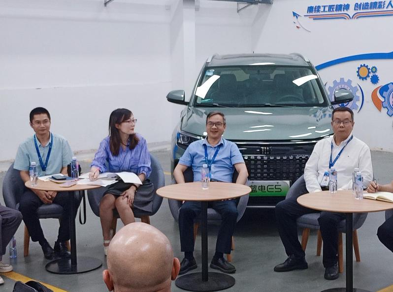 5月12日,學院黨委書記陳宜大、副院長陳常暉來到新能源汽車產(chǎn)教融合示范園,同正在學習的外籍友人們座談,現(xiàn)場詢問了此次培訓班的課程安排,關(guān)心了學員的培訓、生活情況。相關(guān)職能部門負責人陪同參加。