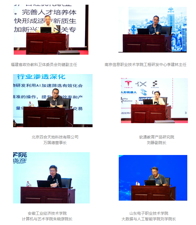 在交流環(huán)節(jié),大會特邀謝俐司長、劉健副主任、北京四合天地科技有限公司萬國德董事長、軟通教育產品研究院劉靜副院長、山東電子職業(yè)技術學院大數據與人工智能學院劉學院長、安徽工業(yè)經濟技術學院計算機與藝術學院朱曉彥院長、南京信息職業(yè)技術學院工程研發(fā)中心李建林主任等七位專家作主旨報告,內容立足前沿、聚焦實踐,以深刻的理論洞察與豐富的案例剖析,為人工智能領域職業(yè)教育在新時代的創(chuàng)新發(fā)展指明了方向。