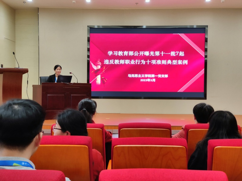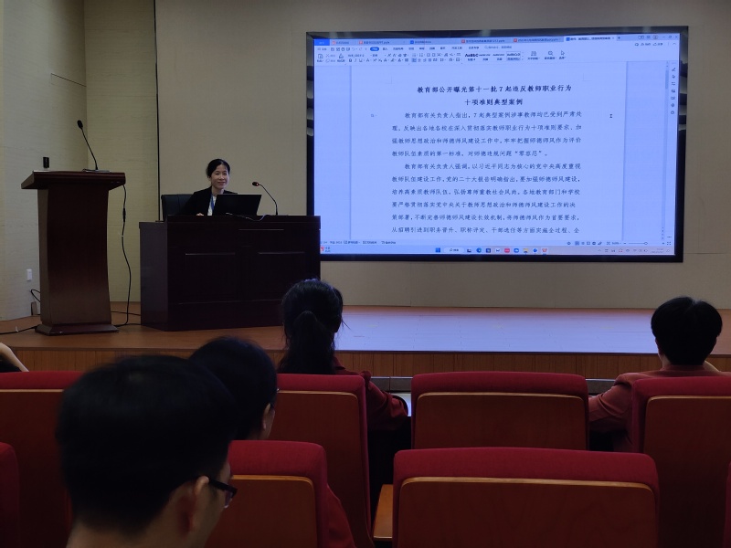 省級樣板支部馬克思主義學(xué)院第一黨支部書記洪凌艷領(lǐng)學(xué)《教育部公開曝光第十一批7起違反教師職業(yè)行為十項(xiàng)準(zhǔn)則典型案例》。以生動詳實(shí)的案例、通俗易懂的語言,對全院教師加強(qiáng)警示教育,希望大家警鐘長鳴,引以為戒,共同營造“風(fēng)清氣正”的師德師風(fēng)氛圍。