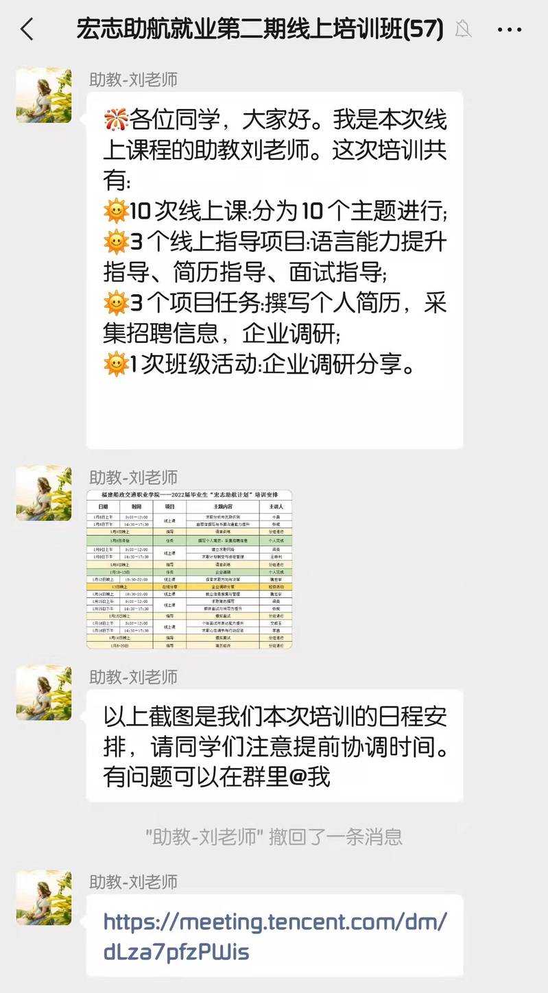 此次培訓(xùn)采用線上線下相結(jié)合的方式,以體驗式教學(xué)為主,與實踐相結(jié)合,對150名畢業(yè)生開展優(yōu)勢識別、求職準備、求職信息獲取、心態(tài)調(diào)節(jié)等10個主題、總計40個學(xué)時的就業(yè)能力專題培訓(xùn),覆蓋大學(xué)生從求職準備到簽約就業(yè)全過程,學(xué)校還將優(yōu)質(zhì)的就業(yè)資源與參訓(xùn)學(xué)員共享,幫助參訓(xùn)學(xué)員高質(zhì)量就業(yè)。
