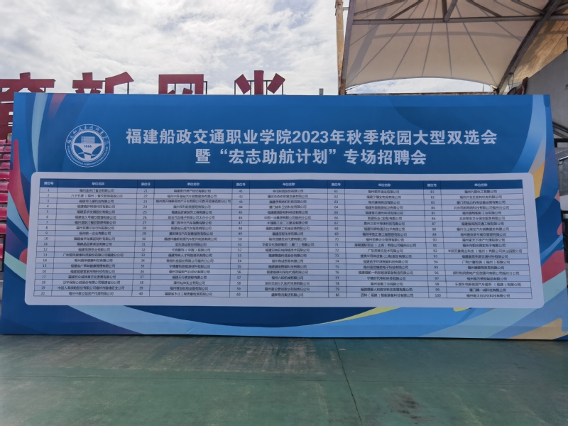 9月8日下午學院2024屆畢業(yè)生秋季校園綜合雙選會暨“宏志助航計劃”專場招聘會在青春田徑場成功舉辦。中國一冶集團有限公司、福建福船一帆新能源裝備制造有限公司、寧德時代電機科技有限公司、宏東漁業(yè)股份股份有限公司等百家省內知名企業(yè)進校招聘,我校8000余名畢業(yè)生參會。