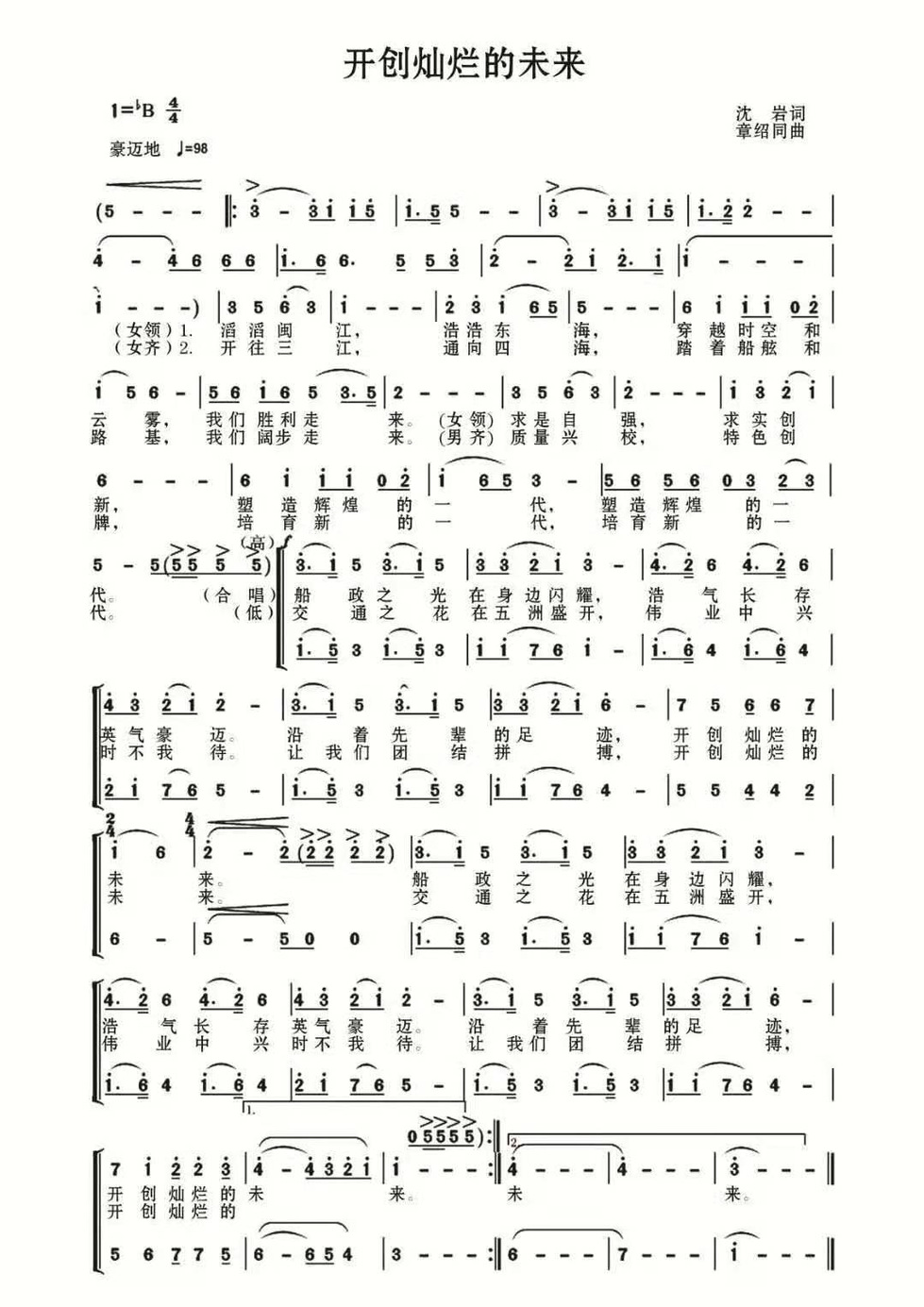 第八十五條 校歌是《開創(chuàng)燦爛的未來》(附后)。
